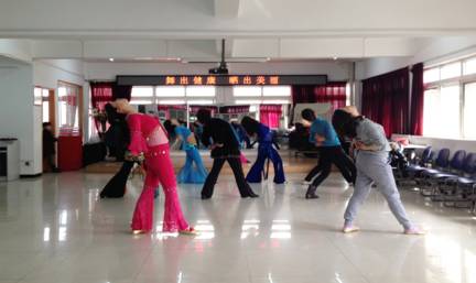 组织社区妇女学习印度风情肚皮