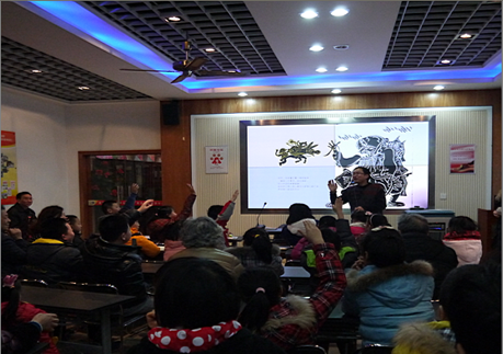 2月6日下午,走进地质社区多媒体室,浓浓的书香气扑面而来,这是地质社区公益项目《小鬼当家》在开展亲子阅读活动,本次活动特邀请了市图书馆的绘本老师。林老师就如何解读绘本,进行着详细生动的讲解。