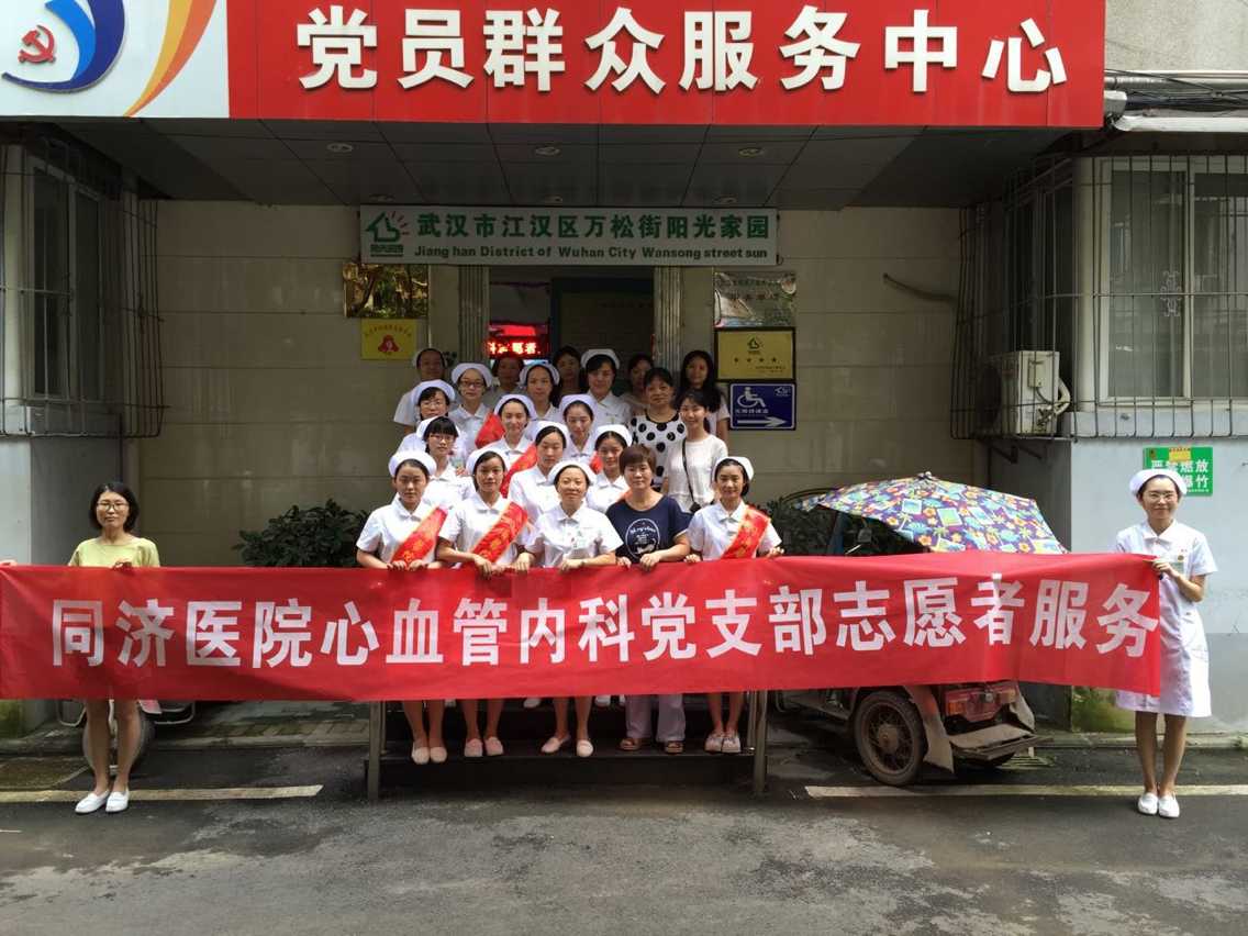 同济医院志愿者心血管内科护士长王昭昭与同事一起对社区行动不便的空巢、独住老人上门检查身体,社区志愿者陪同同济志愿者一起敲开老人家门的时候,老人非常高兴,当检查到邓素文老人血压高压186、低压86,血糖7.6后,志愿者询问老人有没有吃降压药,邓师傅说现在都有吃降压药,志愿者同时告诉邓师傅每天吃药最佳时间为早上的7点到9点之间,医务人员又向老人讲解平时日常生活要注意的方面。让老人非常感动,没想到志愿者们的服务如此细致。