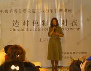 阳春三月,万物复苏,街上的行人悄悄地换上了鲜艳的春装。在这个灿烂的季节,武商商圈楼宇党组织在武广写字楼的尚美形象内,为辖区内的女白领和打工妹们组织了“选对色彩,穿对衣”的迎三八形象管理讲座。