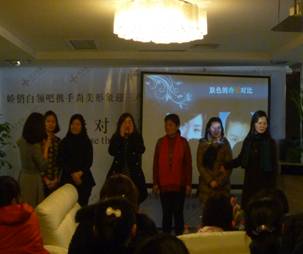 尚美形象是一家高端的私人形象设计会所。本次活动是由武商商圈楼宇党组织联系,尚美形象友情赞助,免费为武展辖区的职业女性举办讲座。在尚美形象的会议室里,形象设计师彭红老师为来自万松地区的各行各业的三十多位姐妹们,讲了一堂生动、活泼、趣味地形象设计课。课堂上,大家了解了自己的肤色,根据肤色选择适合自己的色彩系列。还学会了如何搭配色彩,如何展示自己。