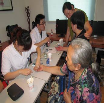 2013年5月21日上午,“全科医生团队服务”启动仪式正式拉开了序幕。活动现场,万松卫生的代表与社区的张素芳老人签订了武汉市全科(家庭)医生团队签约服务协议书,将为老人免费提供健康咨询、家庭药箱指导、基本医疗卫生服务,根据合理要求提供预约服务,让全科医生的服务更加的便捷、实惠。活动中,医护人员认真的为前来咨询的居民进行登记,详细解释全科医生服务的各项内容,并细心的为居民进行常规的血压和血糖检查。当医生发现居民袁江敏婆婆的血压偏高时,还详细询问老人平时的吃药习惯和吃哪种降压药。当得知老人固定吃一种降压药时,医生还及时提醒老人注意说:“婆婆,降压药要经常更换,不能总是吃一种药,不然降压效果不好的。”袁婆婆听了连连点头称是。