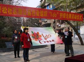 2014年3月13日,通过近3个月的精心孵化,社区第一个公益社团组织“IDO”护绿先锋这天正式成立了。社团组织不同于以往社区活动组织,是完全基于社区自愿而组成的,社团的成员们为了这个组织的成立,群策群力共同为社团设计了队旗、队标,在13日这天,他们汇集在一起以宣传展板、现场签名的形式向广大居民们进行宣传。在社团启动仪式的现场,他们还用身体摆出了“IDO”的造型,用实际行动展现出这群志愿者们享受付出所带来的快乐。
