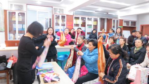 2014年3月7日上午,机场社区举办七彩文化家园携手广发银行庆“三八”妇女节活动。活动开始社区书记、主任沈林莉对社区的姐妹们送去节日的问候。活动中,广发银行汉口支行理财顾问给大家讲解理财知识,参加活动姐们们,热情非常高涨、大家认真的听着,还不时咨询相关理财产品。接着社区邀请了礼仪专家给社区妇女姐妹进行了“美一美,扎丝巾”活动。礼仪专家讲解示范5种丝巾扎法,只见大家人手一条社区发的三八礼物--丝巾,认真听、动手扎,生怕自己没学会扎丝巾的方法。活动中,大家可以说轻松愉快。看到大家放下平时各自的忙碌来参加活动、忙中享受轻松。姐妹们个个脸上洋溢出兴奋。