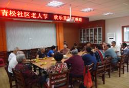 2013年10月13日在中国第一个“老人节”即将来临之际,青松社区开展了关爱老年人的座谈会、象棋比赛、慰问等系列活动,隆重庆祝老人们节日的到来。