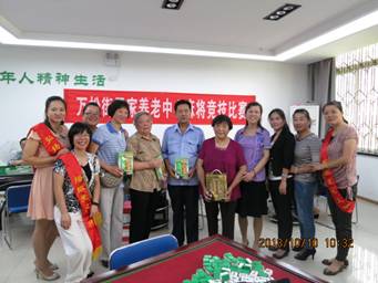 10月10日上午9时,万松街居家养老中心迎来了60多位老年朋友。本着“卫生麻将,愉悦身心”的理念,选手们虽然头发花白,但是喊起“碰”、“杠”、“胡”来绝不含糊。比赛选用的是大家最熟悉的武汉麻将,用扑克牌作筹牌,采用一局决胜的制度,养老中心的8名志愿者任裁判,为大家作出公正合理的评判。活动最后决出一等奖一名付海英(电业社区),二等奖三名江碧兰(养老中心)、方向成(白松)、庞金秀(白松)。