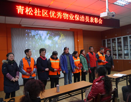 2015年1月16日下午,青松社区利用“两长四员”总结表彰会的契机,对社区物业保洁公司的部分员工进行了表彰,对他们在社区环境维护中所付出的努力进行了表扬,社区两长四员们也对他们的工作给予了肯定。