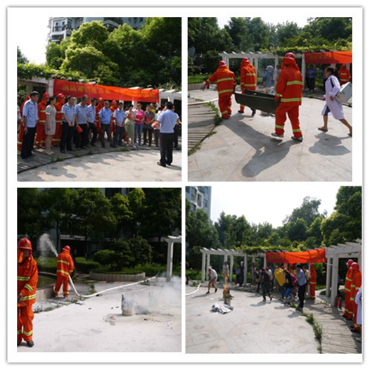 此次演习由社区胡主任全程指挥,首先由胡主任对此次消防演习流程作了详细的讲解,接下来由辖区刘警官简单介绍了灭火器的使用方法,以及在发生火灾事故后的基本扑救方法、逃生自救方法等消防安全基本知识。最后是消防实战演习,此次消防队员由社区义务消防队成员担任。在演练中,消防队员有条不紊地进行了灭火器现场使用、明火扑救、逃生、转移伤员等项目。点火后,首先有居民拨打119电话报警,准确报出火灾地点、火势情况,接下来居民们用打湿的毛巾捂鼻猫腰演习火场逃生,消防队员用消防水带、灭火器对初期火灾进行扑灭,消防人员及医生将受伤人员用担架迅速转移。