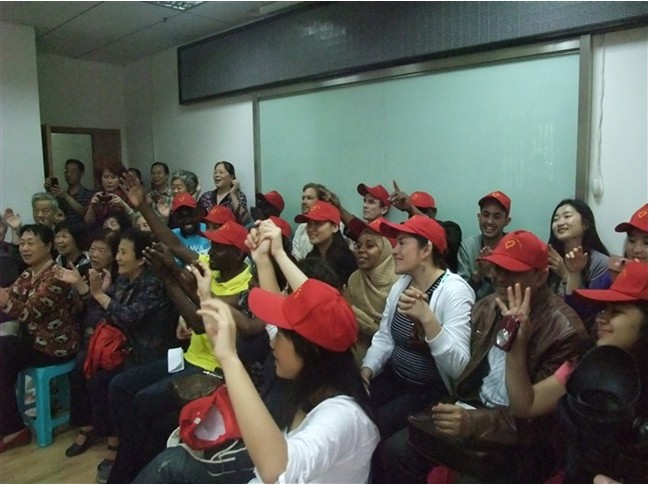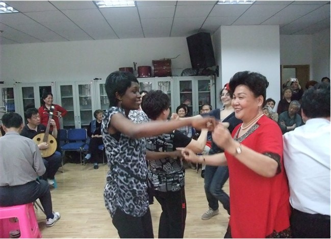 2012年5月4日下午,来自多个国家的20多位华中师范大学留学生志愿者来到万松街居家养老服务中心同我街航侧社区枫叶红老年艺术团、中心老年朋友开展联谊活动。