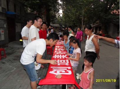 2011年8月18日,为迎接城管革命,将老旧城区打造出新面貌,我街航空社区组织辖区党员、志愿者、农民工子女,开展“创造美好家园从我做起”签名活动。通过活动向大家宣传环境卫生人人参与、人人爱护的理念,发动大家积极动手,倡导保护环境卫生从我做起,从身边做起。