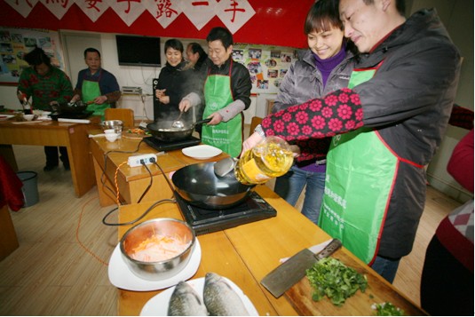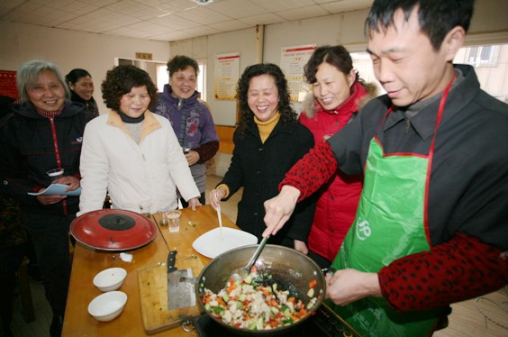 这次参加烹饪表演的5位“好男人”全部来自辖区双职工家庭。“好男人”们纷纷大显身手,掌勺炒菜,妻子在一旁当起“甩手干部”。切菜声、剁肉声、锅碗碰撞声、炒菜声、欢笑声,此起彼伏。比赛现场香味弥漫,一道道精美的菜肴摆上餐桌。选手们除了在“味”方面大下功夫外,在“相”方面更是别出心裁:有圆圆满满的“全家福”、步步高升的“白灼虾”、年年有余的“红烧鲫鱼”、晶莹透亮的“水果萨拉”等营养搭配合理的菜肴。选手张华平说:“平时我工作太忙,家务都是妻子全包了,今天我非常乐意当一天称职的“家庭主夫”,让妻子好好享受一天假期”。