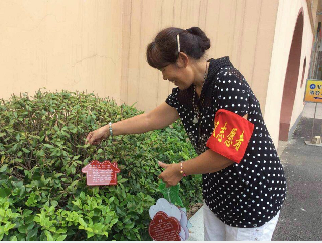 8月18日上午,机场社区“七彩志愿者服务队”的十余名志愿者早早来到社区后花园,在花草种植高手林琴芳、胡炳庆等党员志愿者的带领下,利用自己的平生所学,义务为社区打理花草树木,浇水施肥,并为社区前后花园种植的每一株花草树木挂牌定名,给这里的所有花草树木都配发一个了一张“身份证”。 一时间,社区栽种的红叶石兰、紫薇、春鹃、红花檵木、山茶花等植物的脖子上都挂上了一块块设计精巧的小牌(塑料玻璃制作),牌子上面不仅有各种花草的名字,还介绍了他们的习性及生长特点,以及适合种植的季节土壤。 以后,凡是来到小花园闲坐的社区居民,不仅可以欣赏花园的美景,还可以依据植物上悬挂的小牌文字,认识植物,了解植物,还可以让家里的孩子们从这里学到很多课本上不能学到的知识。 今天,志愿者们共为花草挂牌52块,重新培土换花钵子6个,极大地节约了社区美化环境的成本,美化了环境。