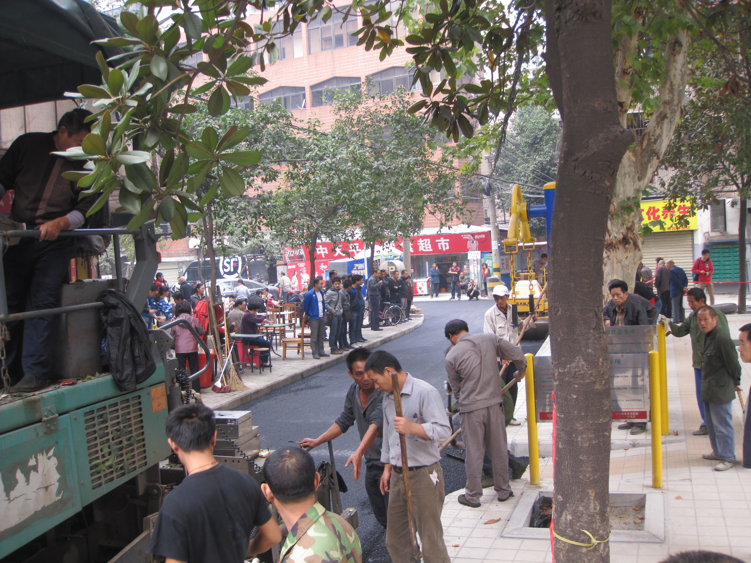 同期,10月18日夜至20日上午,小区19栋大门到小区37栋出口沿线进行了道路“刷黑”,铺设了柏油。18日夜,为保证工程顺利进行,防止车辆驶入,社区群干不辞辛劳认真值守各个通行路口,一直到晚上11时才离开。19日早上7点,工程作业开始,大量早起的居民走入施工路段,给工程作业带来影响。社区全体工作人员及大量志愿者们在各个路口对居民进行劝阻,到下午2时多工程结束,连续坚持7个小时保证了道路刷黑工作顺利完成。施工过程中,不少居民围在施工路段的两边,齐声高赞政府为社区做了一件大好事,同时还对对社区尽责的工作表达了感谢。20日上午,道路标线设置完毕,小区道路焕然一新。