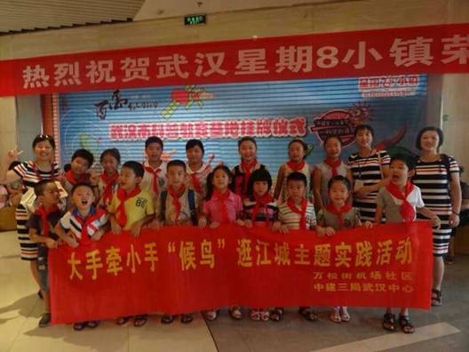 8月22日在区计生委、区科协、万松街计生科的指导和协调下,万松街机场社区组织武汉中央商务区“武汉中心”项目部的农民工孩子,游玩了位于沿江一号的“星期8小镇”。