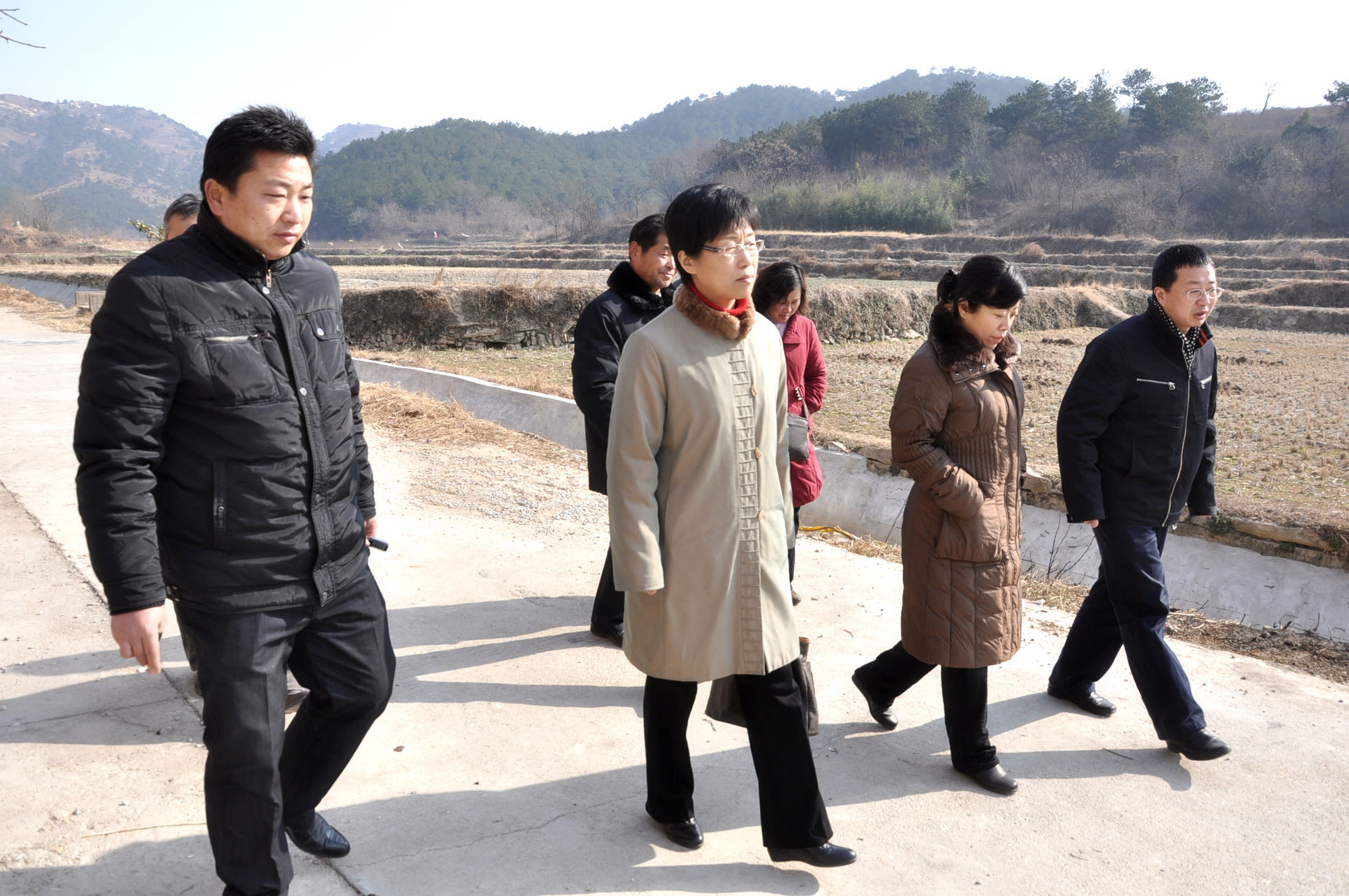 附照片三、 照片三、四:万松街工委领导实地查看资助仰山庙村修建的水渠设施