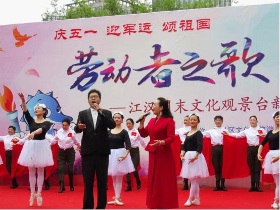 4月29日下午,由江汉区文化和旅游局、新华街办事处主办,区文化馆、新华街文化站及取水楼社区承办的,“庆五一·迎军运·颂祖国”劳动者之歌,2019江汉区周末文化观景台新华街专场在小南湖公园精彩开演。这也是继4月12日“周末文化观景台”系列文化活动在中山公园正式拉开序幕后的首场演出。