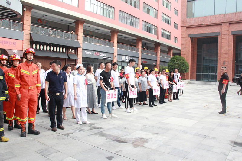 随着警报声响起,江汉区安全生产综合应急演练正式启动。企业迅速启动疏散预案,第一时间组织人员开展自救和疏散,随着火情的扩大,企业迅速向有关政府部门报告。我区应急部门迅速启动应急预案,调动应急救援力量赶往现场处置。救援人员到达后,迅速展开各类设施设备,采取内攻、登高车对被困人员实施救援,同时对火场实施火势堵截;120急救中心对营救出的被困人员进行现场急救并及时转运重伤员。经过半小时的紧张战斗,在各部门紧密协作下,顺利完成了此次火情的处置。随后,医疗救护人员演示心肺复苏和人工呼吸等医疗急救方法和急救知识,开展了消防机器人、无人机等新型消防器材的展示活动,介绍装备的使用方法,让参演人员亲身体验感受。演练结束后,区政府办副主任熊巍对演练活动做了讲评,对演练活动开展给予高度评价。