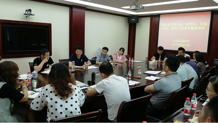 6月19日至21日,江汉区园林局党组针对近期基层党建工作督导巡检中发现的问题,结合全市第二十个“党风廉政建设宣教月”活动安排,组织开办了为期三天的基层党支部书记、副书记、纪检委员和党务工作者专题培训班,局党组书记、局长樊昕在培训班上讲授廉政党课,并同各与会人员开展了集中廉政谈话。