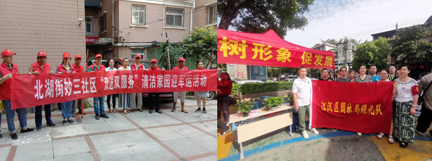 在活动现场,众人化整为零,或化作“绿化修剪队”,对树木枝叶整形,修剪枯枝败叶,清除花坛内的杂草;或化作“共享单车先锋队”,清理违规停放的共享单车,或化作“楼道清理队”,清理楼道垃圾杂物及卫生死角;或化作“植物养护专家”,为居民讲解花卉绿植养护知识。