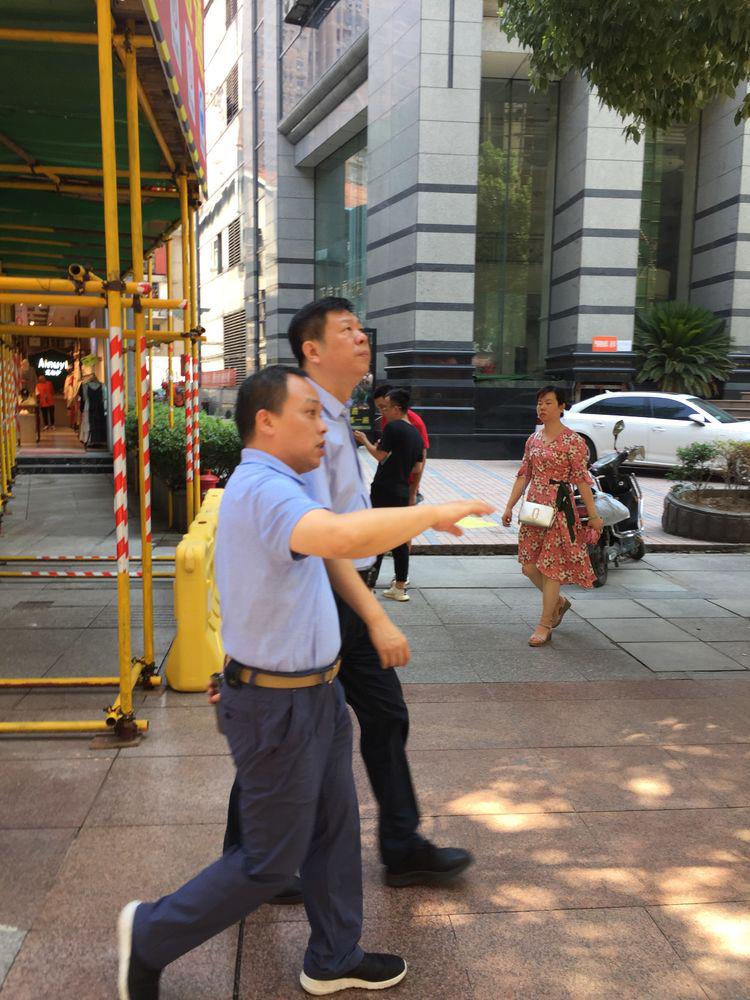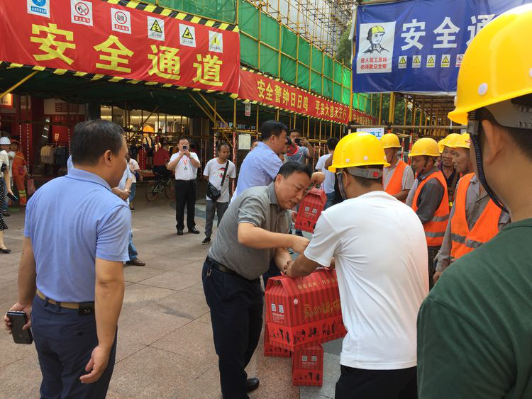 2019年8月13日,江汉区李湛区长、许光辉副区长专程来到江汉路步行街,慰问江汉路步行街改造施工的建筑工人,向他们的辛勤劳动表示感谢,为他们带来清凉消暑物资。