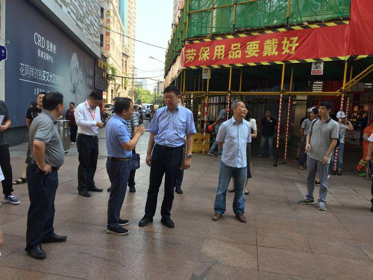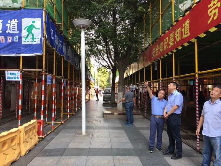 随后,区建设局黄万能局长陪同李湛区长、许光辉副区长视察了步行街立面整治施工情况。