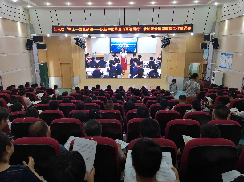 9月12日上午,江汉区“同上一堂思政课”——庆新中国华诞与军运同行”活动暨全区思政课工作推进会在武汉第十二初级中学举行。区委书记张俊勇等区领导深入课堂听课,区委教育工作领导小组成员单位负责人和全区初中万余名师生通过网络同步收看。