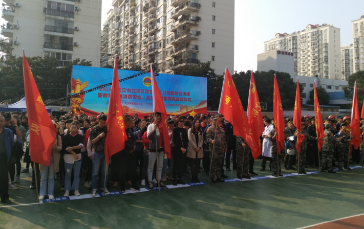 2019年11月8日下午,由武汉市教育局、武汉市民防办公室、江汉区人民政府主办,江汉区建设局(民防办)、江汉区教育局共同组织的武汉市江汉区2019年防空袭人口疏散综合演练拉开帷幕。