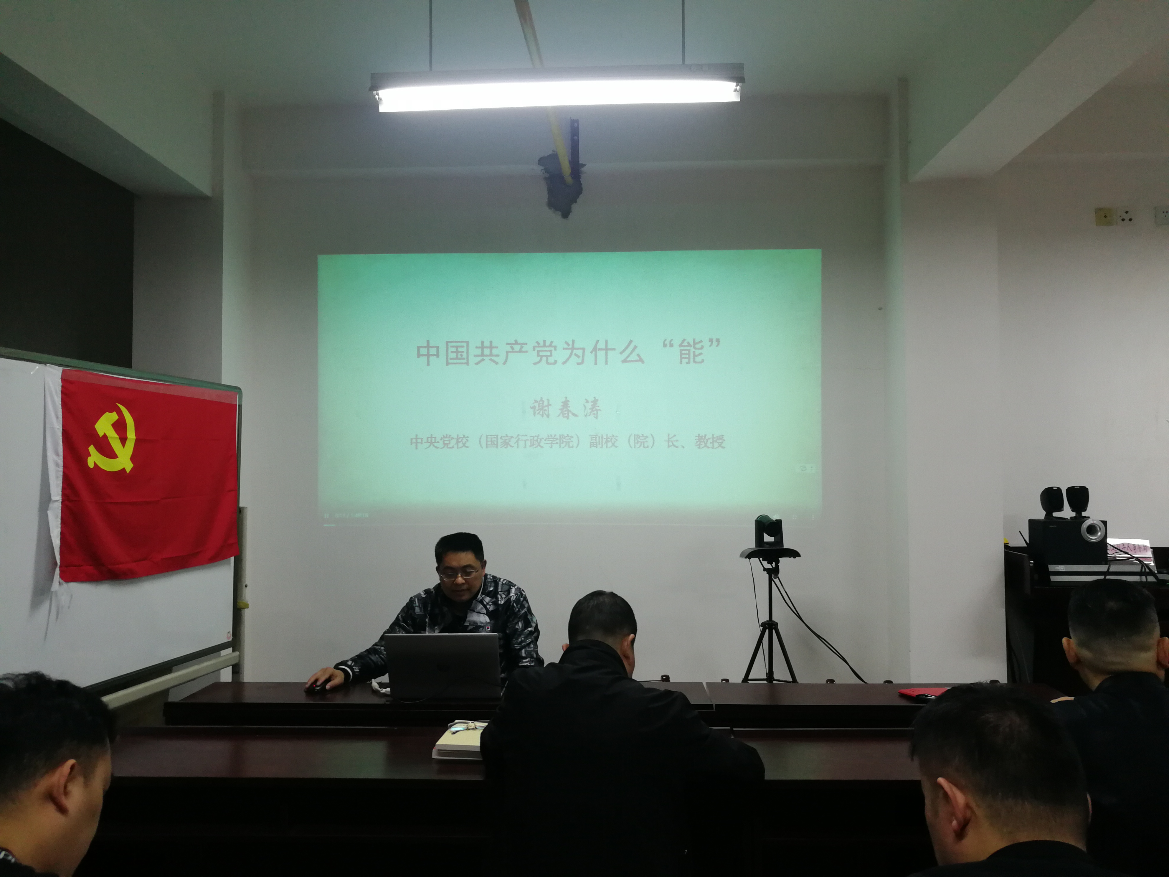 专题讲座由中共中央党校(国家行政学院)副校长(副院长)谢春涛教授主讲,他从中国共产党为什么能建立新中国、中国共产党为什么能收拾好烂摊子、中国共产党为什么犯过严重错误还能得到人民支持、中国共产党为什么能取得现代化建设的巨大成就这四个维度出发,深入浅出地解答了“中国共产党为什么‘能’”这个宏大的问题,讲述了中国共产党成立近百年和连续执政70多年以来,引领中华民族站起来、富起来到强起来的复兴之路。