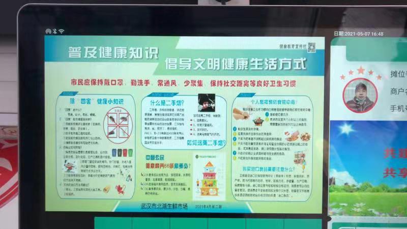 三是扩大宣传氛围“覆盖面”。在工作微信、QQ工作群发送国家卫生城市复审要求的相关信息,做到工作人员全部知晓,动员全区15个农贸市场制作卫生健康宣传栏15块,悬挂在市场醒目处,在市场利用电子显示屏宣传迎接全国卫生城市复审的标语口号和宣传画,对春季爱国卫生运动要求和市民应知应会知识进行普及宣传。
