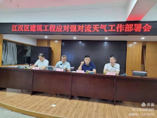 为认真汲取5月10日武汉地铁集团物业开发大楼亡人事故的教训,确保恶劣气候条件下建筑施工工地的安全,进一步推进建设工程安全工作,2021年5月14日下午江汉区建设局建管站召开江汉区建筑工程应对强对流天气工作部署会,辖区在建项目参建三方负责人参加了会议。江汉区建设局副局长胡卫斌、区应急局总工王小洪等领导出席并就近期安全生产工作做出了要求。会议由区建管站站长王磊主持。