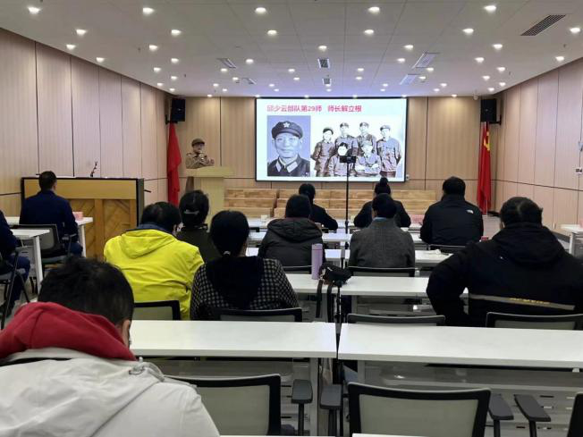 今年是抗美援朝战争胜利70周年,社区特邀红色基因传承人解琳红,为社区全体党员及退役军人讲述——邱少云部队两代后人接力从军报国的故事。解琳红本人1977年入伍,先后在陆军190医院、湖北武警总队医院工作,1990年转业。其父解立根,1944年8月参加革命,1946年3月加入中国共产党。他先后参加了抗日战争、解放战争、抗美援朝战争和新中国国防建设,历任连长、营长、团长、师长等职,离休前任武汉军区独立师29师师长。解琳红向大家讲述了其父在战争年代经历了许多可歌可泣的英勇事迹。解师长身经百战、不怕牺牲、英勇顽强,身上有9处枪伤、弹片伤,获有集体一等功等多次战功,二等甲级伤残。1953年获朝鲜人民共和国三级国旗勋荣誉勋章,1955年获解放勋章。1988年获独立荣誉勋章。他曾经带领部队在战场上冲锋陷阵,多次身负重伤,但仍然坚持战斗,最终取得了胜利。他的事迹激励着我们在和平年代也要保持共产党员的先进性和革命精神,为实现中华民族伟大复兴而不懈奋斗。