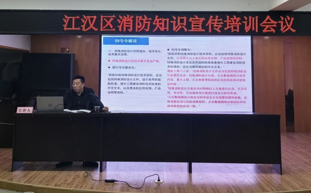 会上,区建设工程设计审查和消防验收中心负责人单健以“筑牢全区建设工程消防安全底线,提高全民消防安全意识水平”为主题,进行“江汉智慧建管大讲堂”宣讲。单健从消防审验业务模式、消防审验业务承接情况、消防检查工作要点、二次装修项目监管、消防火灾案例等五个方面全方位讲解,有针对性地对日常二次装修施工中遇到的难点、堵点进行分析,并提出解决方案。