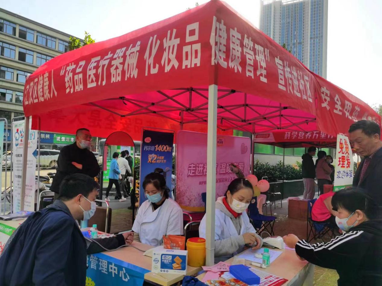 市场监管人员通过发放宣传资料、设置宣传展板等形式,宣传安全用药知识和药品相关法律法规知识,告知居民发现问题药品的投诉渠道,向居民介绍简单识别真假药品的方法。