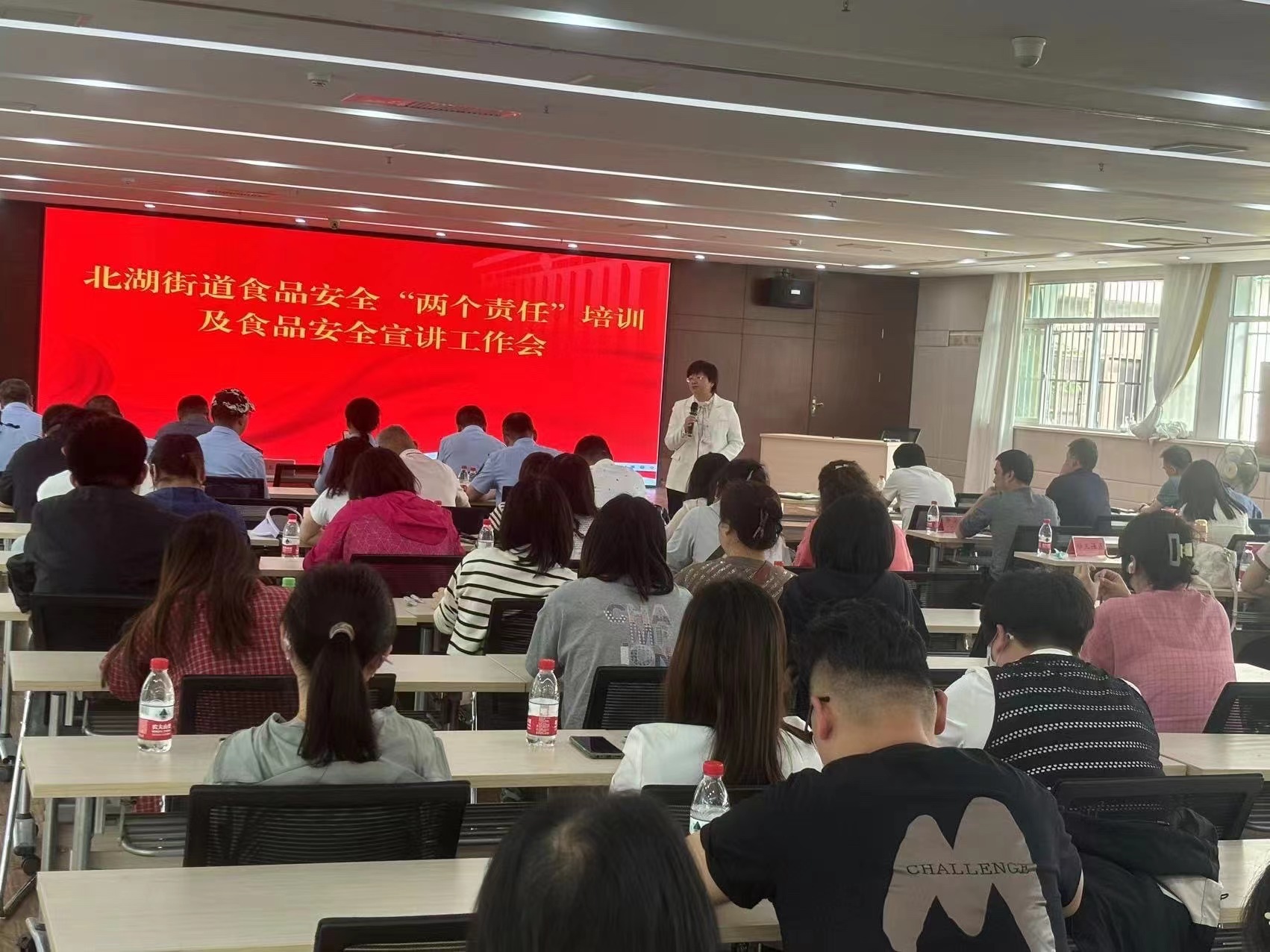 江汉区食药安办副主任、江汉区市场监督管理局总经济师杨波,北湖街道办事处主任张惠君,北湖市场监管所的工作人员,各社区书记和食品安全C级、D级包保人员参加了此次会议,会议由北湖街道办事处武装部长彭泽南主持。