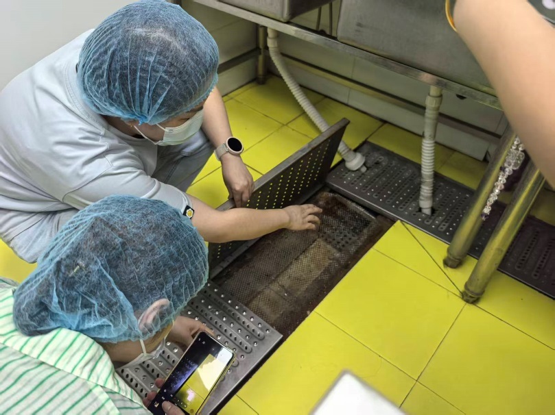 “老鼠会潜水怎么办?”养老食堂负责人对防鼠仍有担忧。幼儿园食安员现场掀开沟盖板展示“防鼠三重门”,细孔不锈钢网纱锁死入口,沟底斜坡联合闭合地漏阻断“鼠道”,再加超声波电子驱鼠器24小时声波驱鼠,鼠群直接退避三舍。养老食堂负责人连连点头:“这招回去就能用!”。