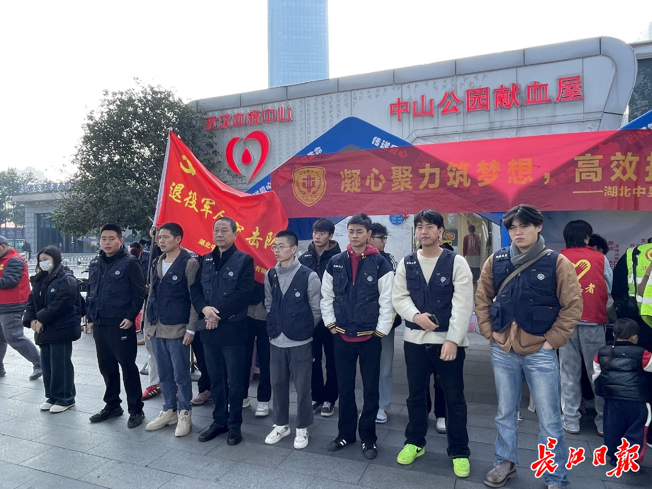39岁的退役军人朱涛曾参加汶川救灾,如今是湖北中昱晟威保安服务有限公司负责人。他第一个坐上采血椅:“过去,我们在军营里保家卫国;今天,我们脱下军装,依然可以在另一个‘战场’上守护人民的生命与健康。组织献血,就是这种担当的延续。”