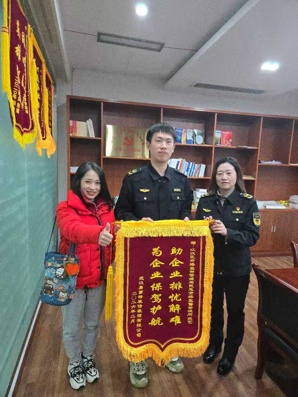 锦旗轻扬,是企业心声的真诚回响;赞誉虽简,是监管初心的生动注脚。这面锦旗,是企业对民意所一线执法工作的认可与鼓励,更彰显了省、市、区助企政策在基层一线的精准落地。有了这份认可,民意市场监督管理所将继续护航企业发展,更有温度服务民生,全力推动市场主体在温暖中行稳致远,让每一份信任都能在春雨般的关怀中生根发芽。