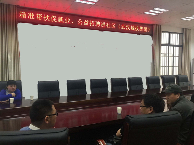 2018年5月23日早上9点由民族街与武汉城投集团联手举办的“精准帮扶促就业,公益招聘进社区”小型专场招聘会在我街政务服务中心三楼举行。