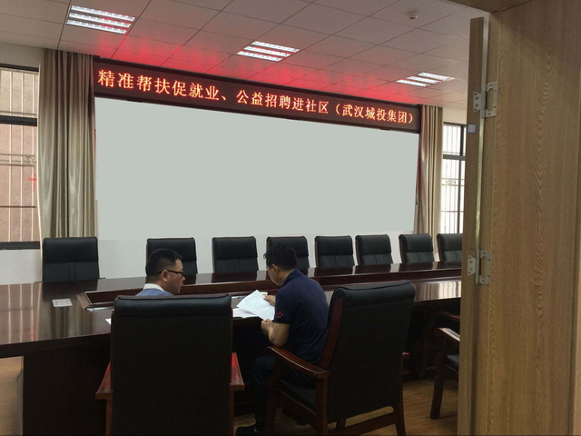 为解决我市城镇困难家庭居民和进城务工人员就业问题,武汉市城投集团公司(国有企业)面向我市招录公益岗位——停车收费巡查员。此次专门到我街进行集中面试,经过前期社区层层筛选,最后符合条件参加面试的应聘人员10余人,签订意向4人。此次就近为他们安排工作,既照顾了家庭、老人、孩子,又减少了外出务工成本,双方都非常满意。(图为面试现场)