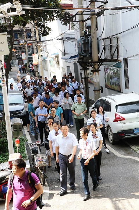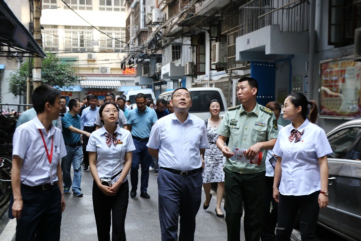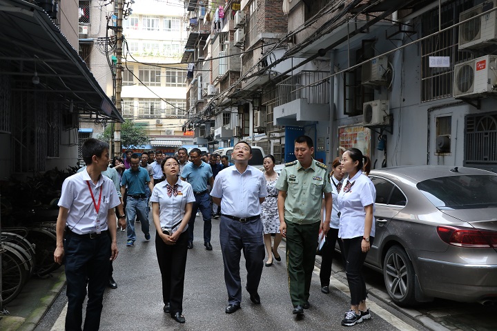 张书记一行在工作人员的陪同下,先后参观维善里小区的楼栋建设、居家养老中心建设、小区红色文化广场等,就关系居民切身利益的二次供水、门禁升级改造、居民自管工作推进情况、电瓶车棚改造、高空抛物等,并对社区即将开展的居家养老中心扩建工作给予充分肯定。