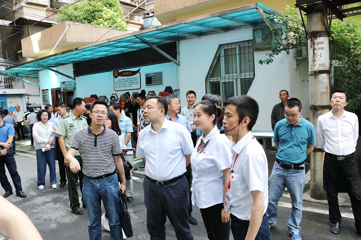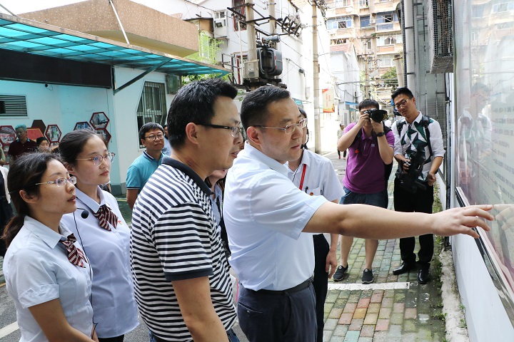 随后,张书记一行前往“红色物业”服务站参观考察,就红色物业服务的便利获取性、居民接受程度、日均服务次数、考核机制等问题,与现场工作人员及居民深入交流,详细了解具体操作细节与服务感受,并给予了指导意见。张书记对社区成立的“博闻之家”特色文化品牌给予了高度评价,并指出以兴趣爱好为支撑、活动为载体,培育社区本土文化特色,将大力推动红色服务精神厚植民意土壤,生根开花。