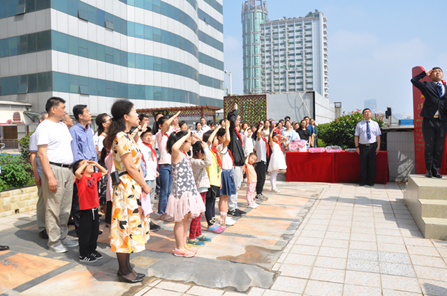 来自中山公园管理处的王修运主任进行国旗下的讲话,他首先代表中山公园向全体儿童表示节日的祝福,并谈到中山公园一直以来对关心关爱青少年工作十分重视,今后会一如既往地支持开展各类青少年教育活动,将“公园大课堂”等特色系列活动越办越好。
