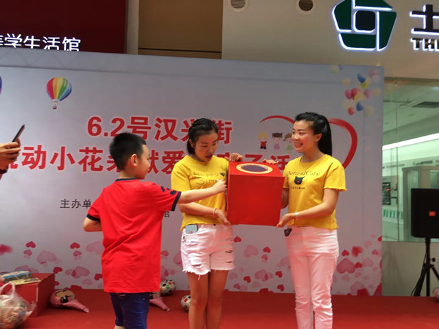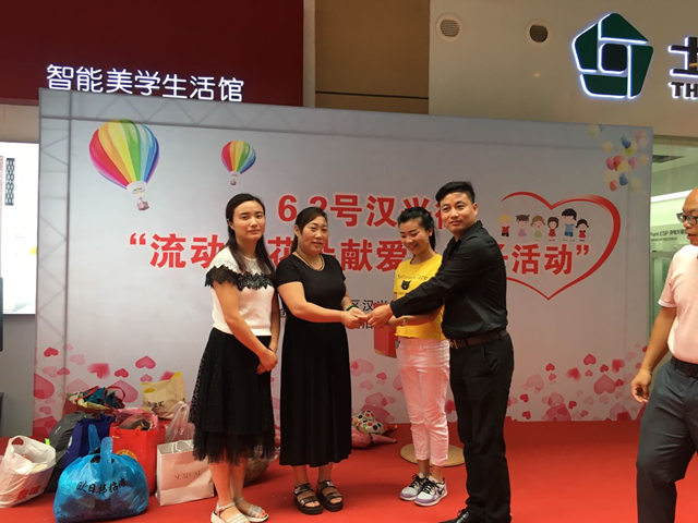 活动中,汉兴街巾帼志愿者们和现场观众一起为流动花朵的孩子们表演节目,载歌载舞,并且鼓励群众献出自己的爱心,现场的小朋友、家长和志愿者们纷纷捐出了图书、文具、衣物、零用钱等,LG、绿叶等几家爱心企业纷纷捐出善款。活动最后所得善款3470元全部捐给了我街流动花朵服务中心,用以缓解服务中心儿童学习和生活压力。本次活动,使流动花朵们感受到了社会各界的关爱和帮助,希望他们在爱的氛围下健康成长,我们的关爱行动也会继续传递下去。