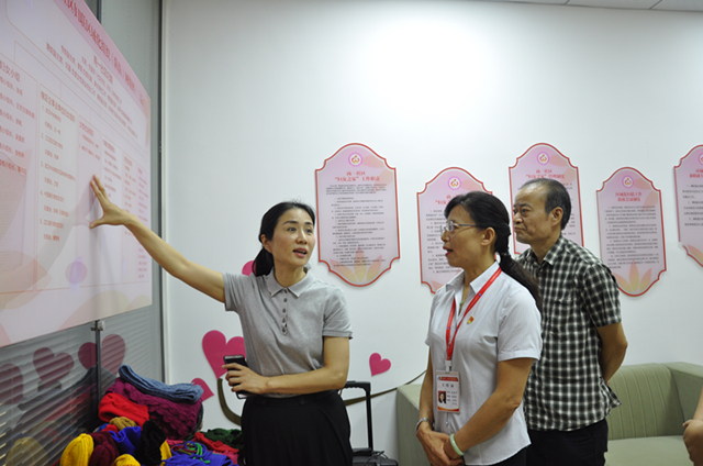 接着,徐主席一行人来到了武广商圈“新女性之家”进行调研。先后参观了微心愿墙、党群活动剪影墙、同心墙、共享空间、妇联工作宣传栏和“正红有约.妇女微家”等活动阵地,了解了商圈“新女性之家”组织架构、活动开展情况。徐主席指出,武广商圈白领女性多,要针对白领需求,切实搭建平台,为商圈楼宇内的女性服务。