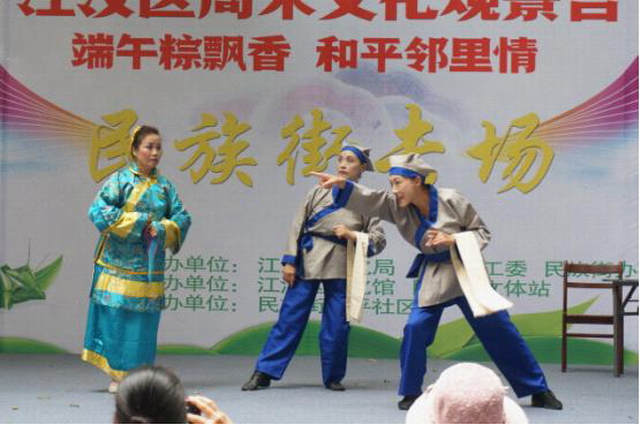 为继承和发扬民族优秀传统文化,营造欢乐、喜庆、祥和的节日气氛,以“我们的节日·端午”为主题,依托江汉区周末文化观景台,利用辖区阵地资源。6月14日下午,民族街在和平社区小广场隆重举行“江汉区周末文化观景台民族街专场”活动。