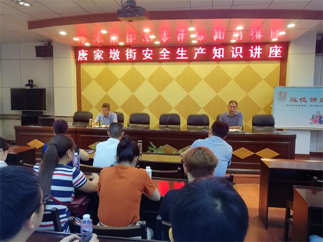 安全生产是关系人民群众生命财产安全的大事。为进一步推动全街安全生产工作,切实做好安全生产监督管理,6月14日上午9:00,唐家墩街举办了安全生产知识讲座,街领导、街机关各科室人员及各社区代表参加了此次学习活动。