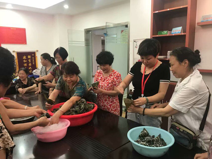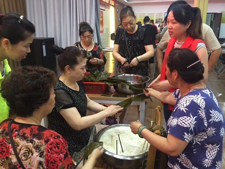 活动前社区工作人员提前购买了糯米、粽叶和绳子,并进行清洗和浸泡,为开展活动做了充分的准备。社区“永远风采”舞蹈队准备了精彩的节目,今天的文艺节目独具特色,既有手拍鼓、京剧串烧等多种形式的演出,还有平安创建的有奖问答互动,让整个气氛显得温馨和谐,同时也体现了社区党委的凝聚力。整个活动现场欢声笑语、其乐融融、不亦乐乎。活动结束后,社区群干把粽子分别送到了现场居民手中,同时为辖区内的失独家庭、困难群体送上节日的关怀和祝福。