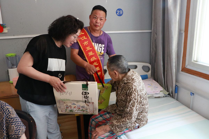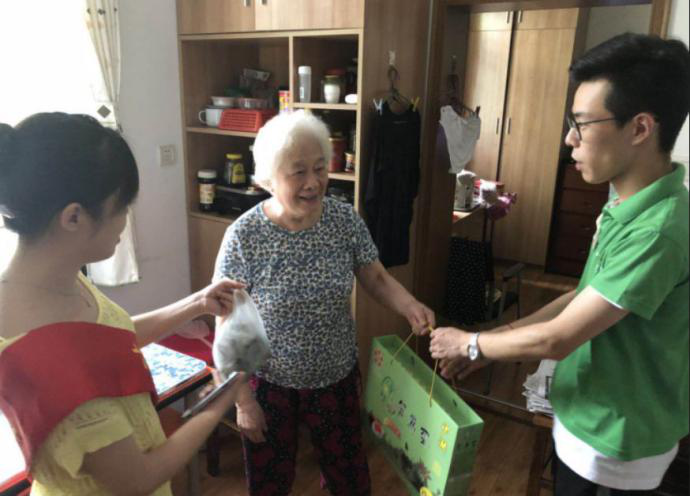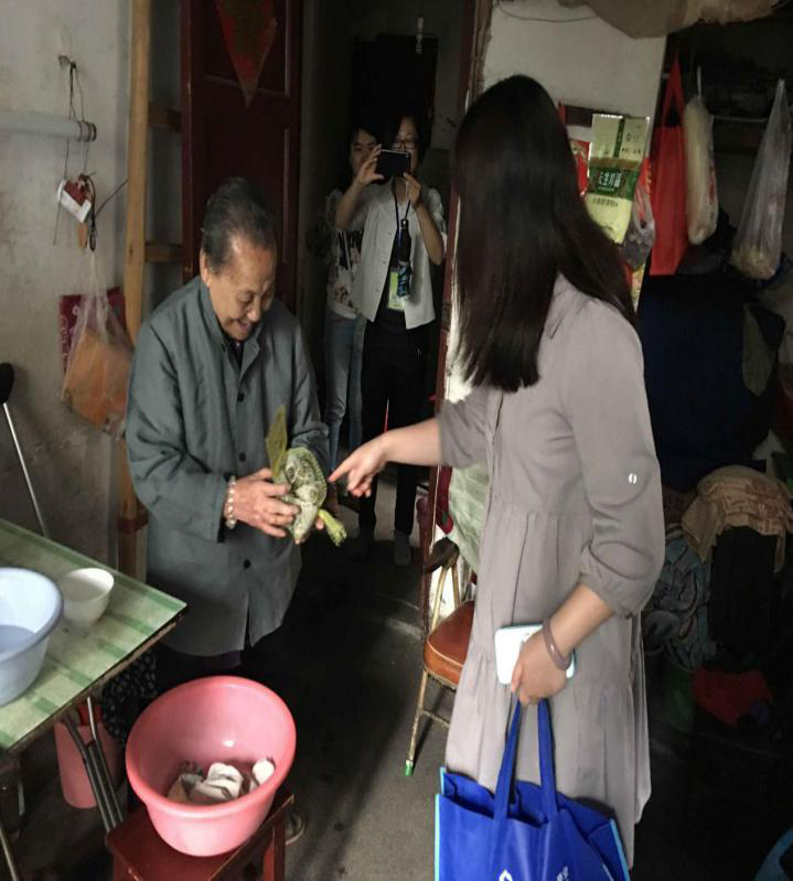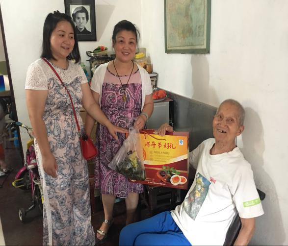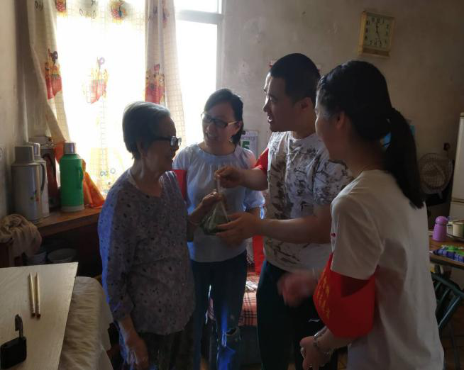 最后,天后社区和至爱公司以及武汉商职医院的工作人员共同上门为独居空巢特困老人一起过端午。送温暖、送健康。让家中不便出行的老人感受到浓浓的关爱,祝福他们身体健康,端午快乐。