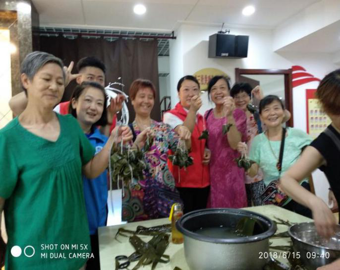 活动进行到这里,大家都积极主动的参与其中,现场热闹非凡。同时志愿者们也不忘给空巢老人送去亲手包的的粽子,送去“一份温情,一份爱的祝福”。