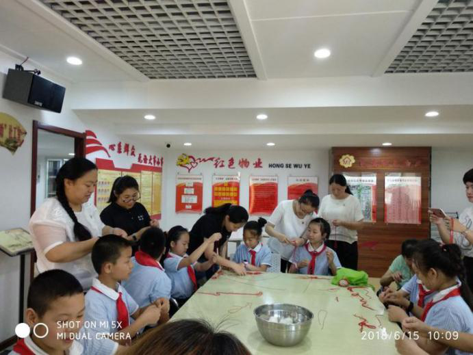 2018年6月15日上午,为迎接即将到来的端午佳节,弘扬红色文化,在社区形成浓厚的节日氛围,民意街多闻社区博闻之家开展纪念中华民族传统佳节“粽叶飘香,喜迎端午”活动。他们分别来自武汉市优抚医院党员医生、辖区江汉团区委团员青年、多闻社区居民、惠康里小学师生、中实物业公司职工及友谊青少年空间社会工作服务中心的社工们。